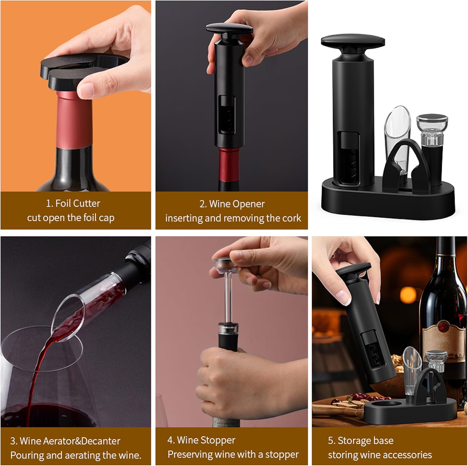 小编推荐:这款开瓶器套装无需充电,集开瓶、倒酒和保鲜功能于一体。套装包含铝箔切割器、真空开瓶器和倒酒器,底座设计便于收纳配件。真空塞可保持葡萄酒风味长达一周,适合家庭聚会、厨房或酒吧使用。