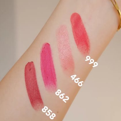 最近看到迪奥更新了一个带金色链条包的口红套装,感觉包包很好看但是口红的色号仿佛不实用啊🤔里面的466和862看了看试色图感觉仿佛都是死亡芭比粉😅858又仿佛有点显老……唯一好看的就是999可惜我已经集齐三支了( ;´Д`)如果可以不要口红单买包包就好了哈哈哈哈哈哈哈哈😂