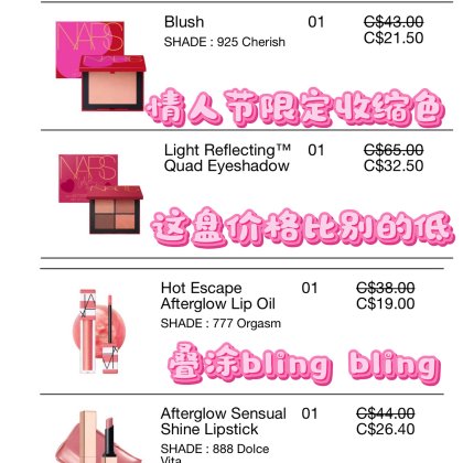 - Nars Cosmetics CA (CA) 现有 订单满$35加拿大境内免运费。
